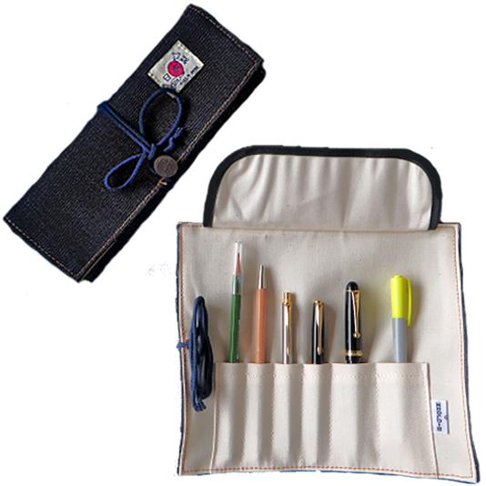 丈夫なデニム生地なので、文房具のほか、小さめの筆や工具にもお使いいただけます。